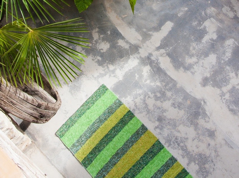 Petits tapis Stripes 70x120, descente de lit. 80% coton, 20% autres fibres. Coloris : multicolore, marron, vert, blanc, orange